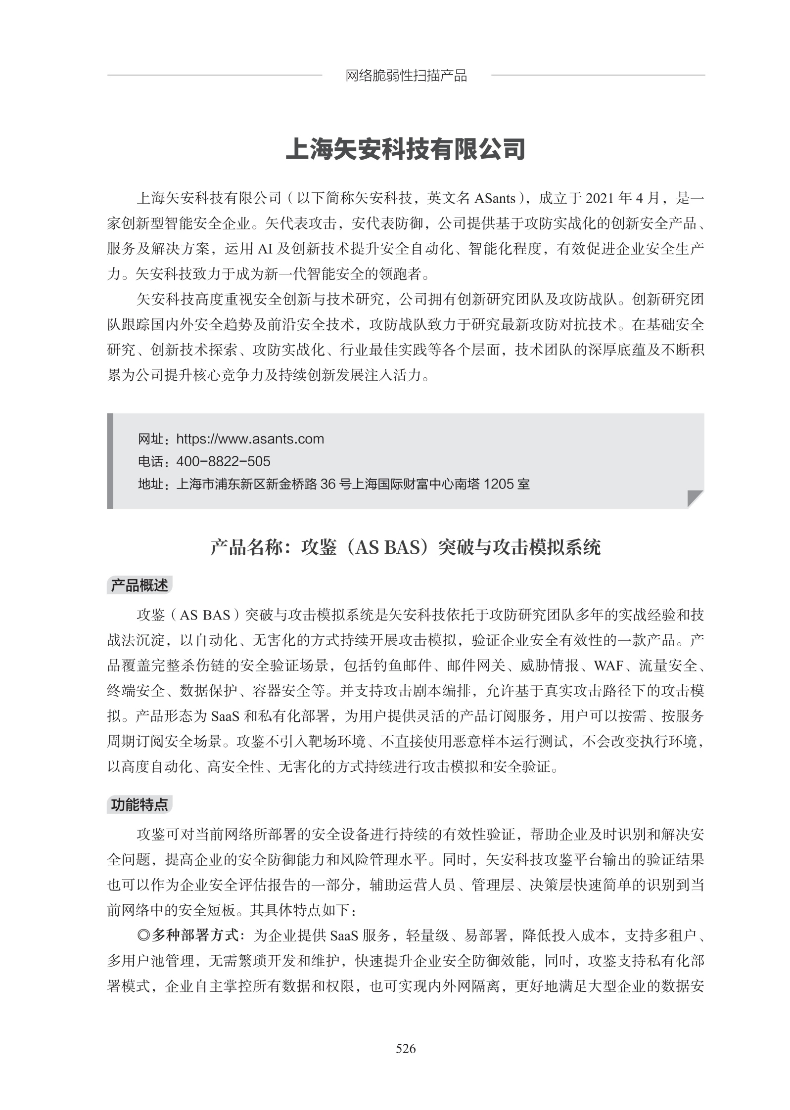 近期,联盟(CCIA)也正式发布了《网络安全专用产品指南》第三版。《网络安全专用产品指南》按照国家互联网信息办公室、工业和信息化部等部门联合发布的《网络关键设备和网络安全专用产品目录》编制,是指导政府部门及企事业单位合规采购安全产品的行业权威参考。矢安科技自主研发的攻鉴(AS BAS)突破与攻击模拟系统再次入选该指南。